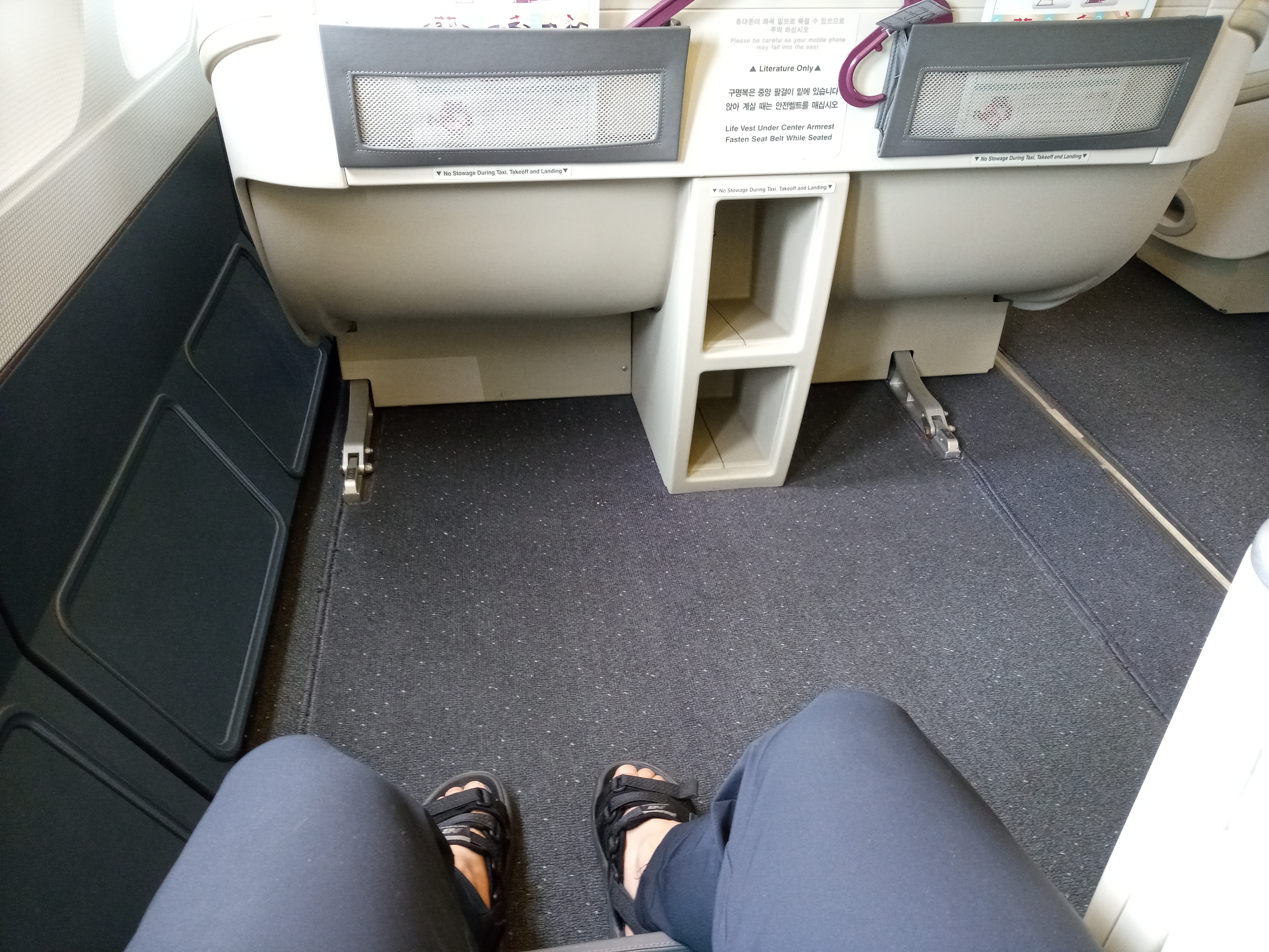 다만 대한항공 프레스티지 슬리퍼 좌석이 다 그렇듯이 오토만 공간이 없는 건 좀 불편했던 지점. 이거 타고 3시간 이상 장거리 비행 하면 피곤할 것 같다.