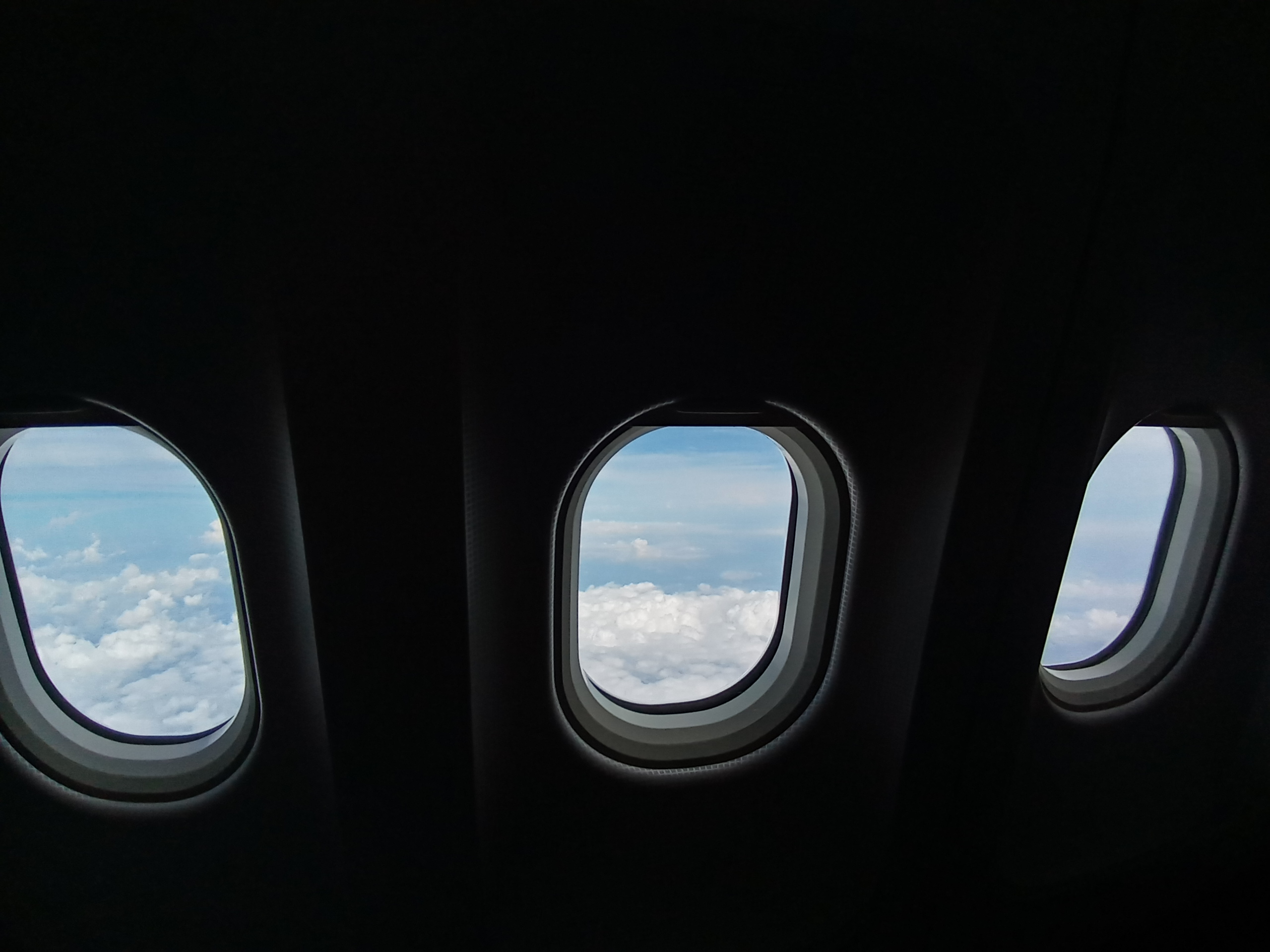 순항고도 위로 올라온 이후 쾌청한 하늘 사진 하나 찍고 바로 누워서 잠시동안 잠을 청했다.